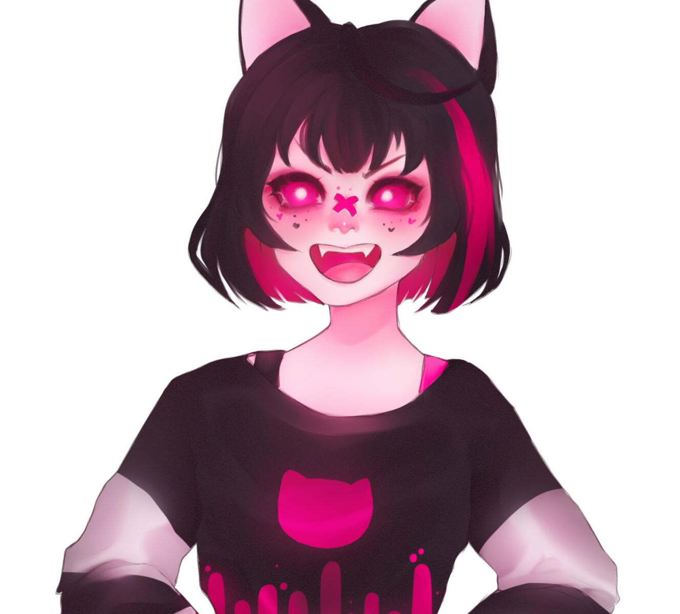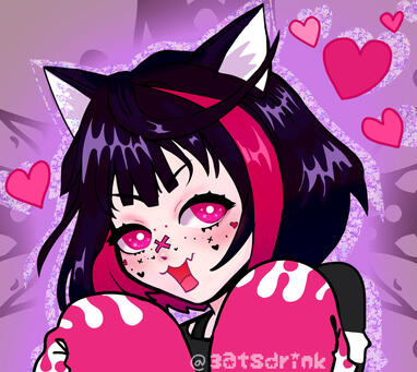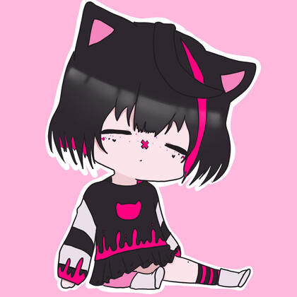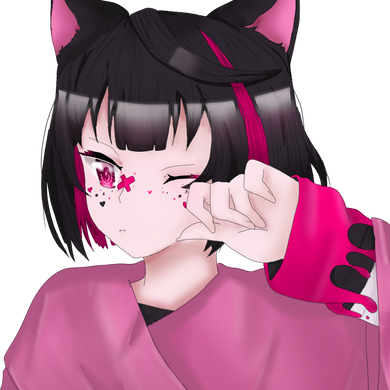 Kuro is a genetically engineered catboy, originally made to combat against rising levels of depression. He has a peek-a-boo hairstyle, being pink on the inside, and black on the outside, save for a pink stripe. His eyes are pink, and his face is sometimes adorned with stickers of hearts, dots, and crosses. He has a long black tail that is wrapped in bandages.